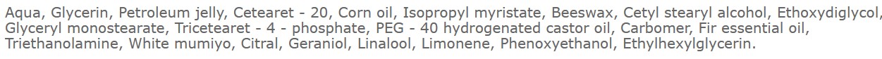 Krém s bielym mumiom je ideálny pre každého, koho trápia bolesti alebo stuhnutosť kĺbov. Vďaka unikátnemu prírodnému zloženiu a obsahu aktívnych látok ( biele mumio, včelí vosk ) má silné regeneračné účinky. Stimuluje tvorbu kolagénu v tele, čím prispieva ku zdraviu kĺbov a rovnako aj pokožky. Poskytuje úľavu aj pri zápalových ochoreniach - dne a artritíde.