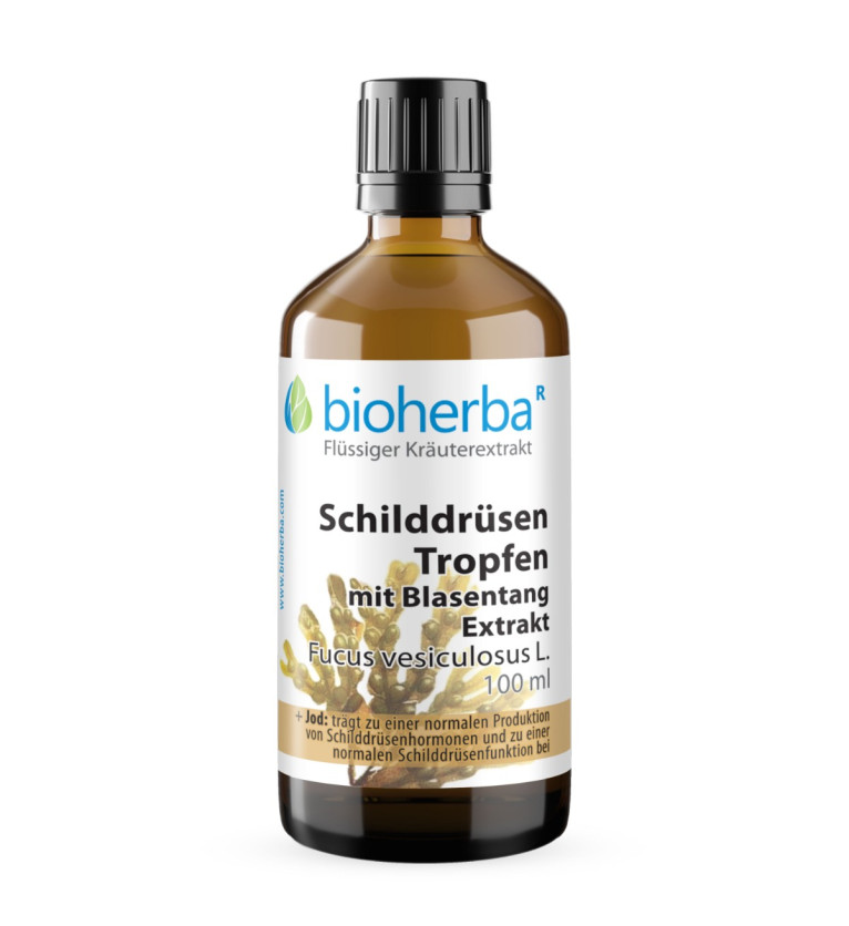 Kvapky na štítnu žľazu – Bioherba sú tekutý doplnok stravy obsahujúci extrakt z morskej riasy Blasentang (Fucus vesiculosus) a jód vo forme jodidu draselného. Receptúra je založená na vode a rastlinnom glyceríne a je určená na každodenné užívanie.