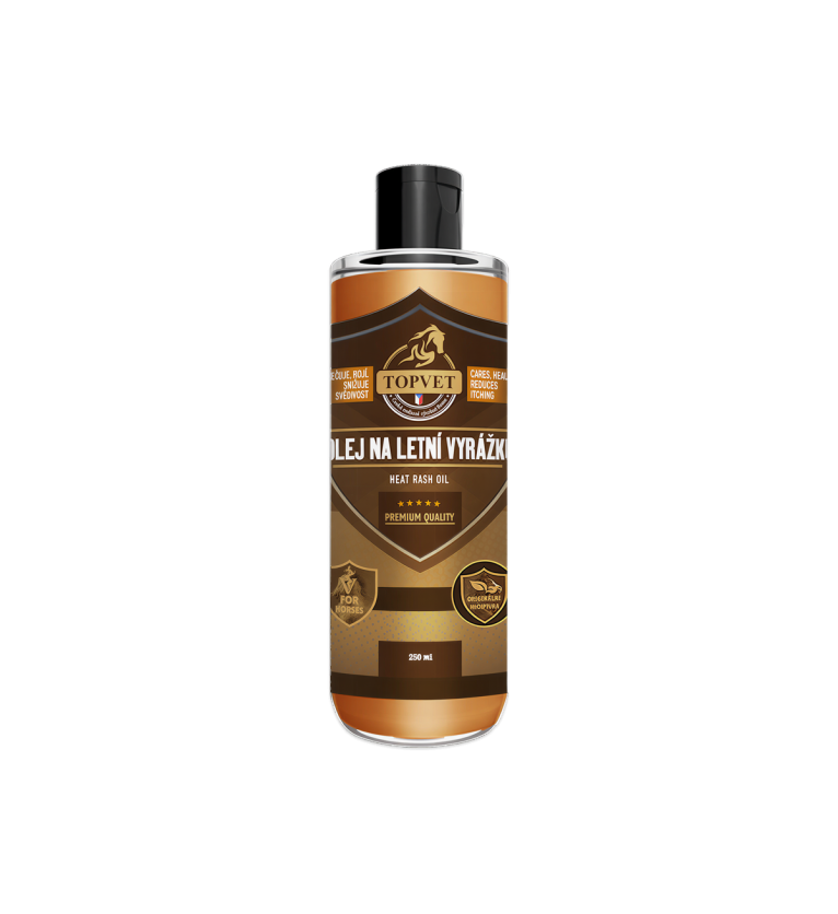 Olej na letnú vyrážku pre kone je veterinárny prípravok určený na starostlivosť o pokožku koní so sklonom ku kožným problémom, najmä počas teplých mesiacov. Vďaka originálnej kombinácii rastlinných olejov a bylinných extraktov poskytuje pokožke intenzívnu výživu, hydratáciu a ochranu pred vonkajšími vplyvmi.