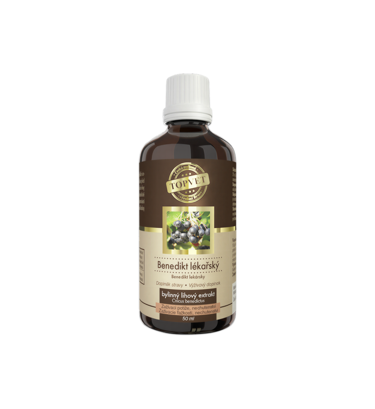 Benedikt lekársky tinktúra je bylinný výživový doplnok obsahujúci extrakt z benediktu lekárskeho (Cnicus benedictus). Táto tradičná liečivá rastlina je známa svojím priaznivým vplyvom na trávenie a podporu chuti do jedla. V bylinnej medicíne sa používa najmä pri tráviacich ťažkostiach, ako je nadúvanie alebo slabá tvorba tráviacich štiav.