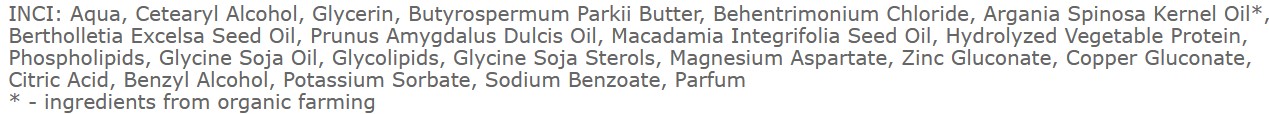 - Makadamiový olej - udržuje ochrannú bariéru buniek, vyživuje vlasy, uzamyká vlhkosť a zvyšuje elasticitu vlasov.