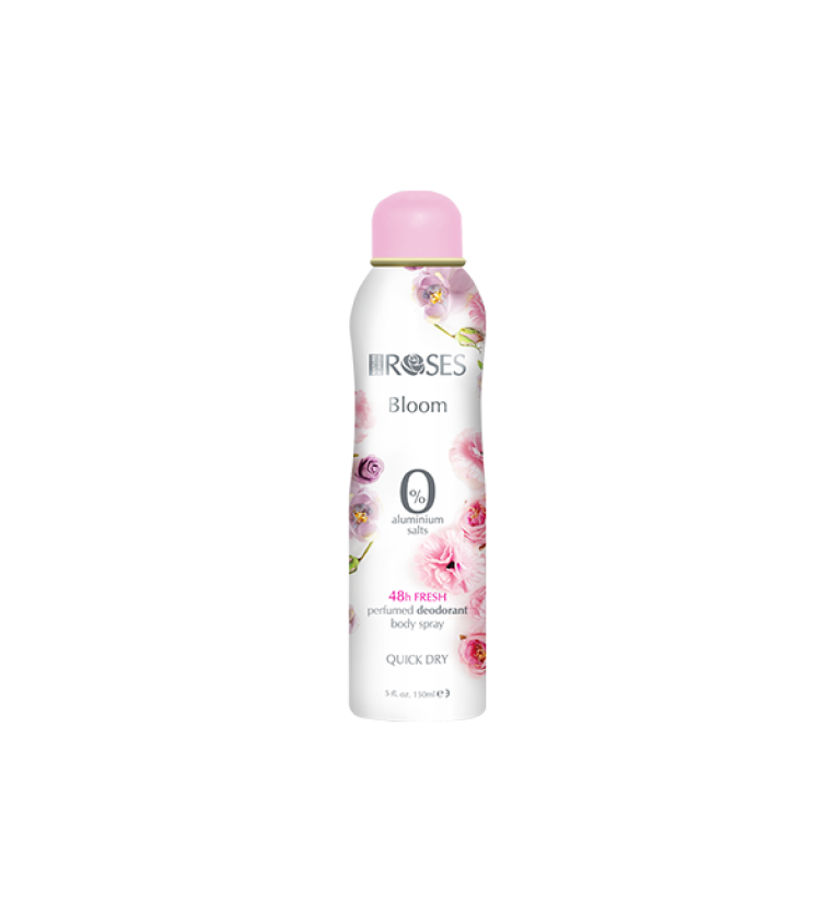 ROSES BLOOM parfumovaný sprejový dezodorant s jemnou a očarujúcou vôňou je ideálnym riešením pre ženy, ktoré túžia po dlhodobej sviežosti a komforte počas celého dňa. Vďaka účinnému zloženiu neutralizuje nepríjemné pachy a zanecháva pokožku podpazušia príjemne prevoňanú bez pocitu zaťaženia.