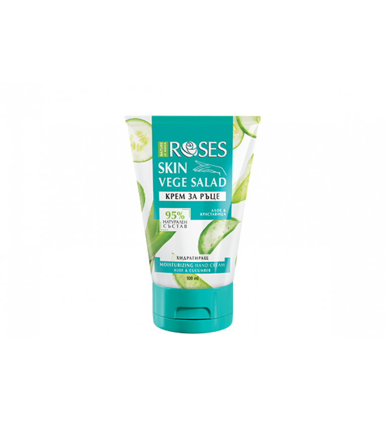 VEGE SALAD hydratačný krém na ruky s extraktom z uhorky a aloe vera poskytuje okamžitú úľavu suchej a namáhanej pokožke. Vysoký obsah glycerínu a prírodných olejov podporuje hydratáciu, obnovuje hydrolipidovú rovnováhu a vyživuje pokožku aj nechty. Rýchlo sa vstrebáva, nezanecháva mastný film a je ideálny pri častom umývaní rúk.