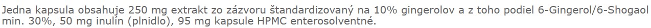 Extrakt z koreňa zázvorovníka lekárskeho. Obsahuje vysoký podiel 6-shogaolu - látky, ktorá sa v bežnom zázvorovom čaji nachádza len minimálne a má blahodarné účinky na ľudské zdravie v rôznych oblastiach - trávenie, svaly, vitalita a energia, imunita, srdce a cievy, pohyblivosť kĺbov, zápaly, hladina cukru v krvi a pod.