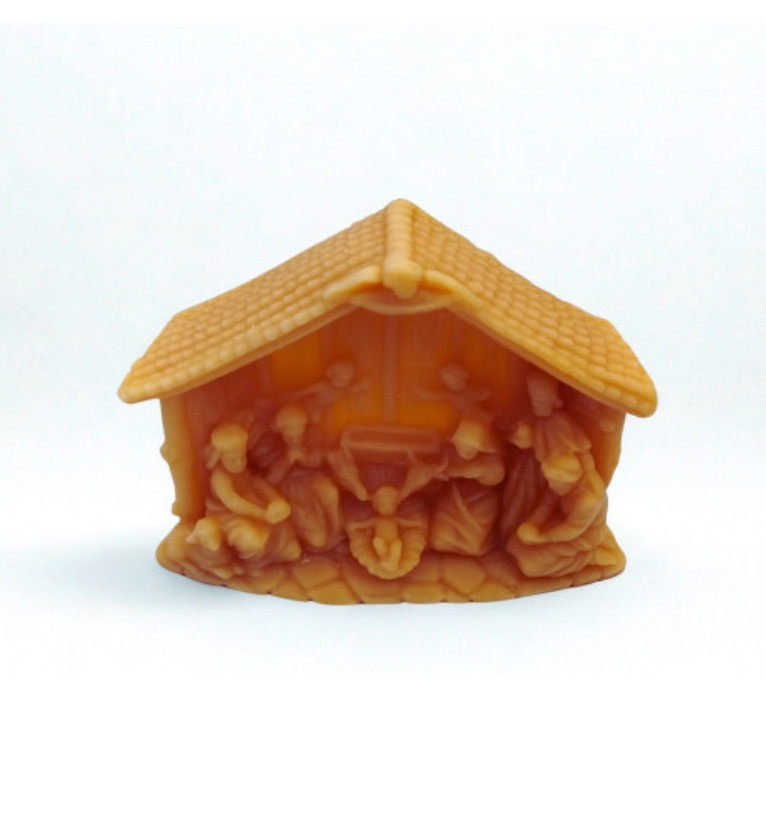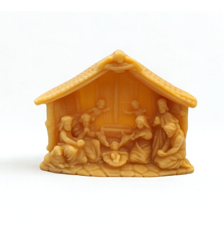 Roztomilý malý betlehem z prírodného včelieho vosku, ručne odlievaný s jemnými detailmi. Každý kúsok je originál, vytvorený s láskou a úctou k remeslu. Tento malý symbol Vianoc v sebe spája teplo, vôňu a čistotu prírody.